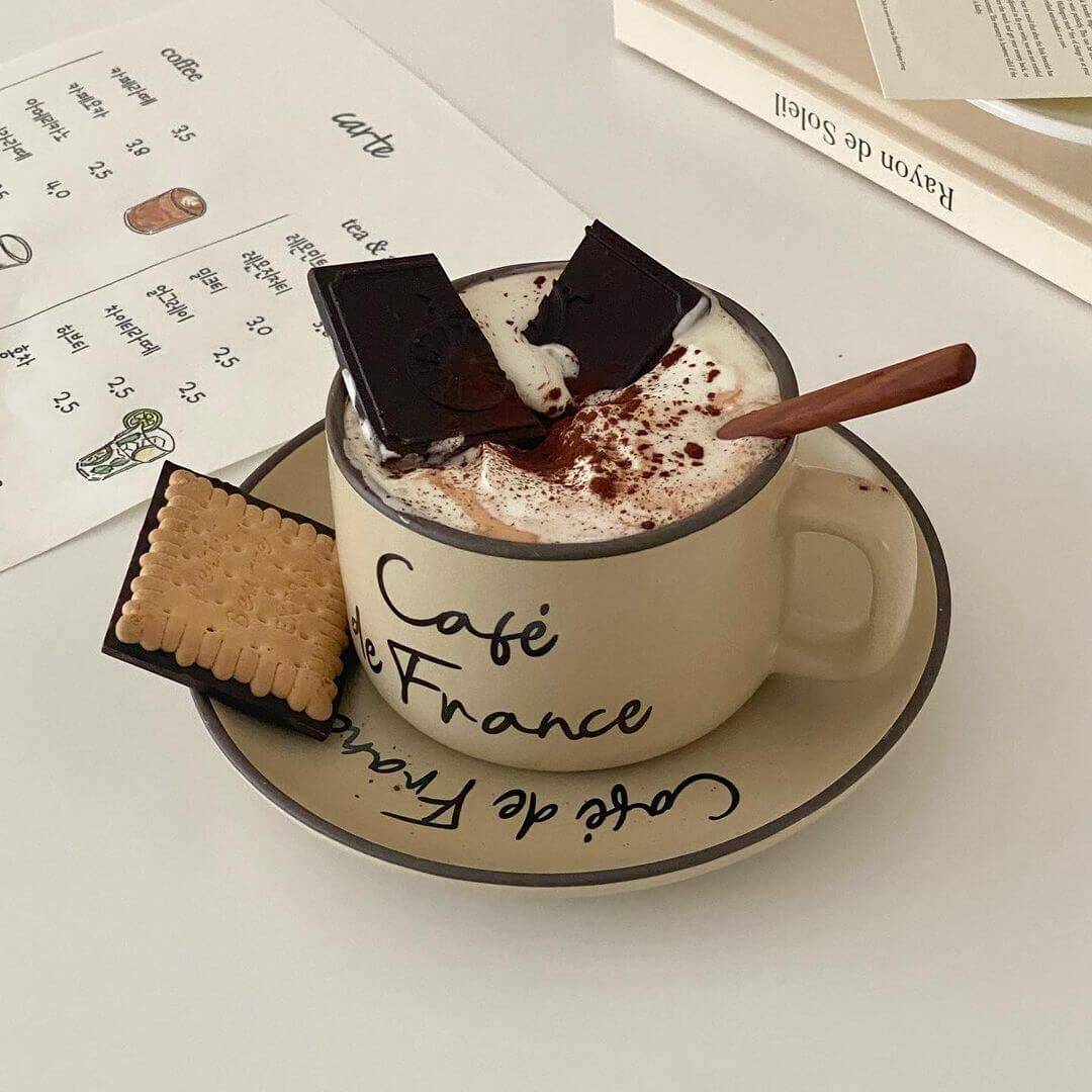 コーヒーの苦味が苦手な方は、砂糖の代わりにチョコレートで甘みをプラスしてみるのもオススメ。ココアパウダーやクッキーを飾り付ければ、写真映えもバッチリなアレンジドリンクの完成!