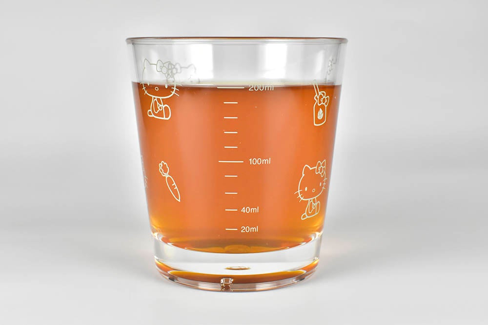 酵素ドリンク『優光泉』と『ハローキティ』とのコラボは、2019年に開始して以降、大変好評をいただいております。第4弾となる今回は、酵素ドリンク等を希釈して飲むときに便利な、ハローキティデザインの『目盛り付きコップ』をご用意しました。ハローキティはサンリオの人気キャラクターとして、子供から大人まで幅広い層から支持を集め、世界中で愛されています。目盛り付きコップにはハローキティをちりばめた「可愛らしさもありながら、大人らしさもある」デザインを採用しており、どなたでも使用できるデザインが特徴的です。