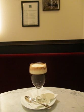 お勧めどおりに飲むと、五分立ての冷たい生クリームがまず口になめらかに流れこむ。そのあとにチョコレート、最後にエスプレッソの濃く苦い味が舌をひき締める。下に行くほど、濃く、温かくなる。日本の店舗でも、チョコレートはトリノの本店からとり寄せたカカオパウダーを使い、本店で受けつがれるレシピを忠実に守っている。同じくトリノから運びこんだ銅鍋で、ゆっくりと焦げつかないように火を入れていくという。本店から定期的に味のチェックも受けている。