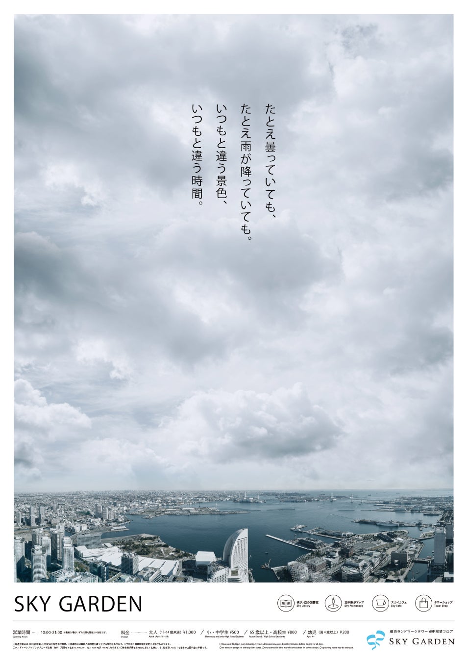 土日・祝日限定で、当日の観測時にスカイガーデンからの視界が雲に覆われ、視界がゼロの場合に開催。